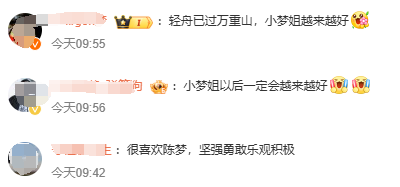 网友也纷纷暗意:很可爱陈梦的坚韧勇敢、乐不雅积极,以后一定会越来越好。